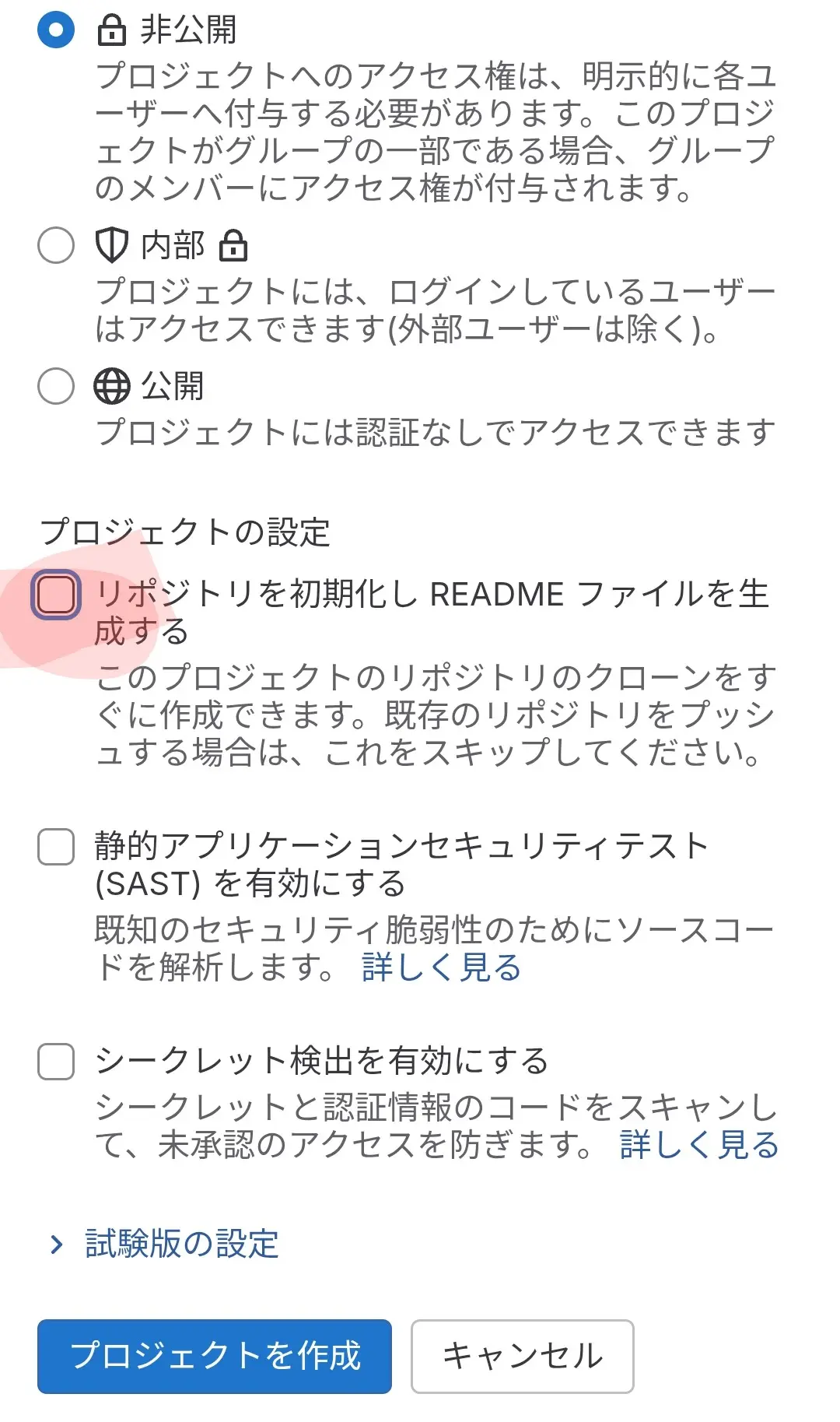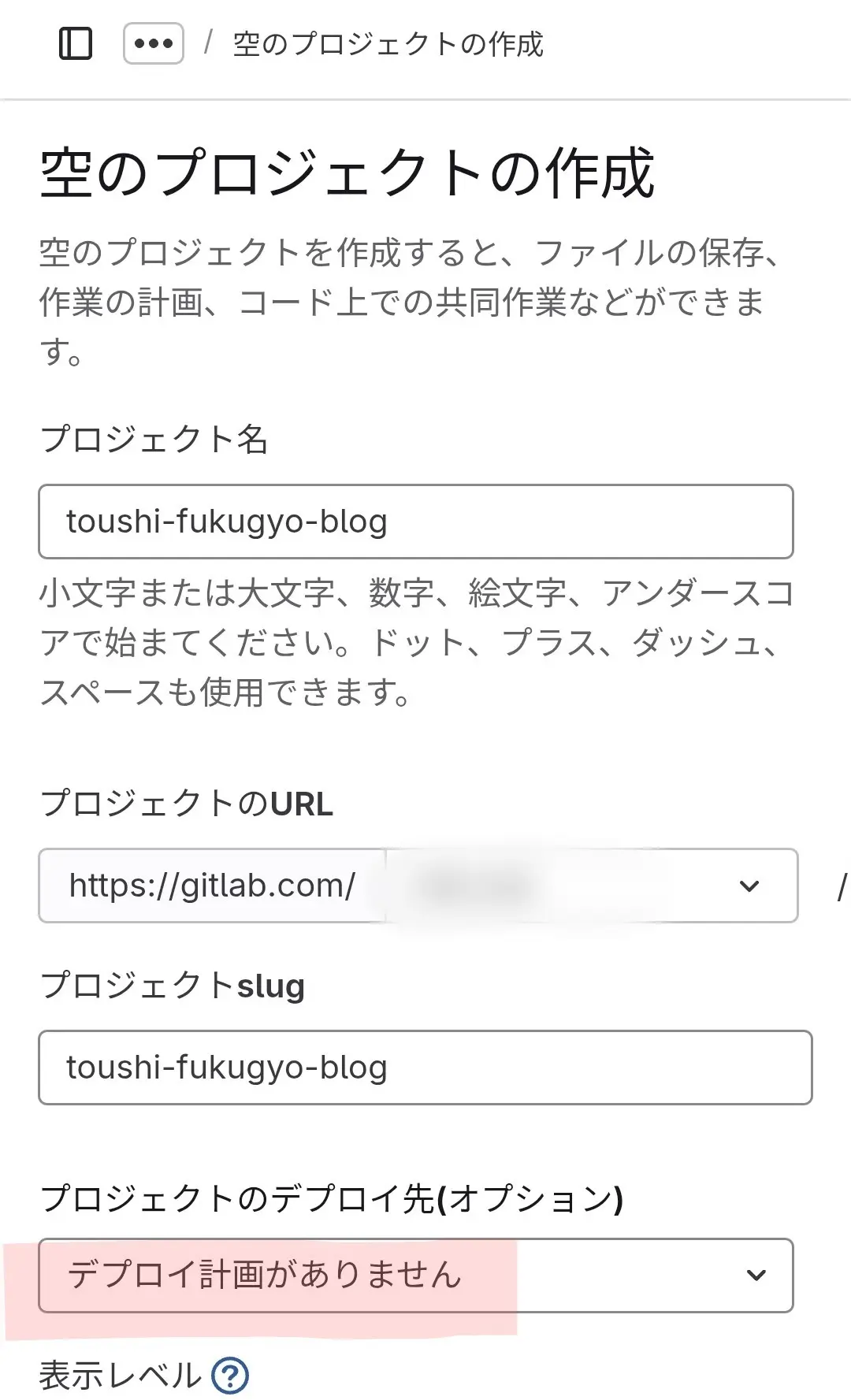 なぜGitLabが先じゃないかというと、hexo initでディレクトリを作るとなると、階層が一個下になっちゃうから。