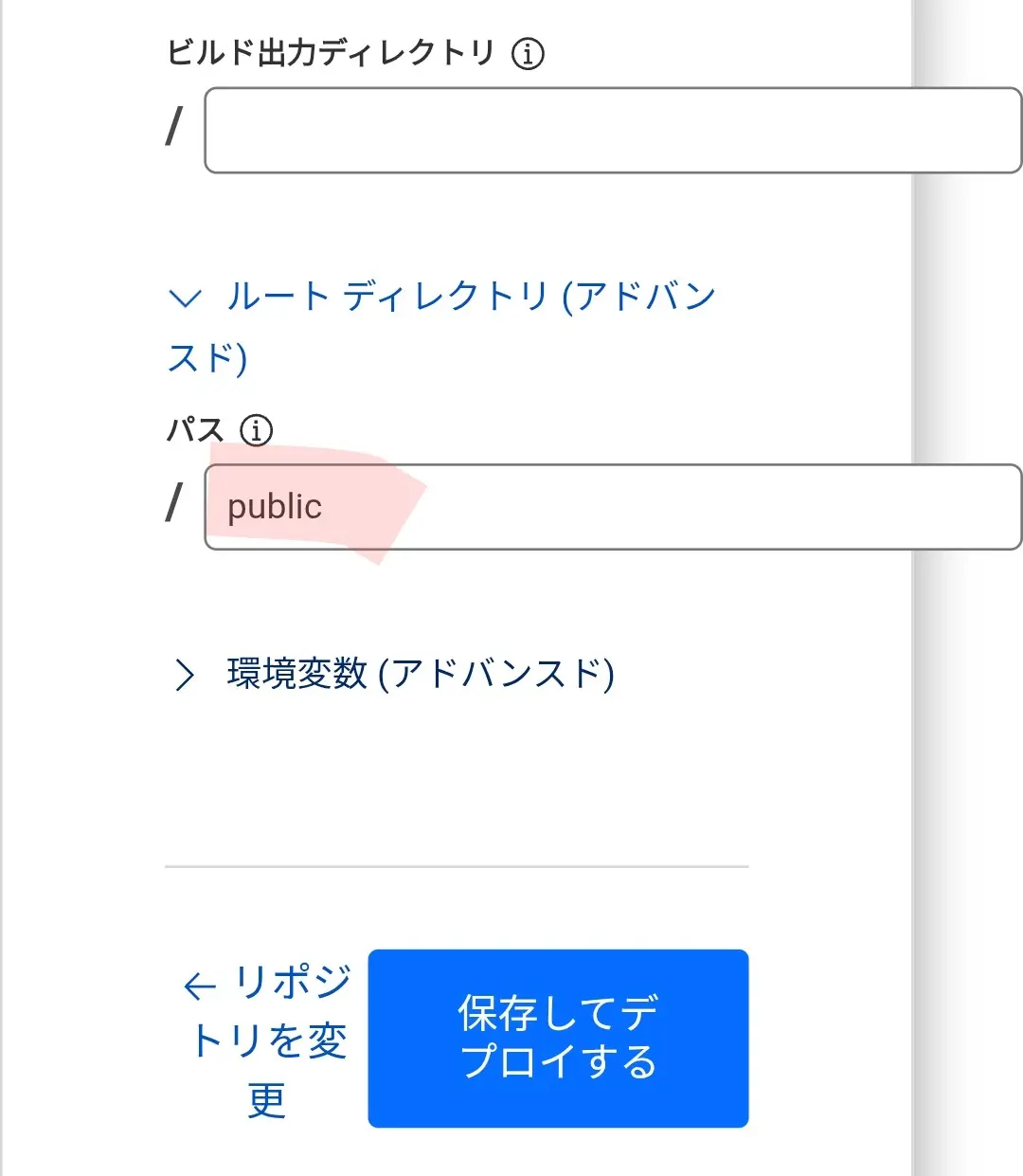 今回の場合、自動でできてくるpublic配下を公開したい。